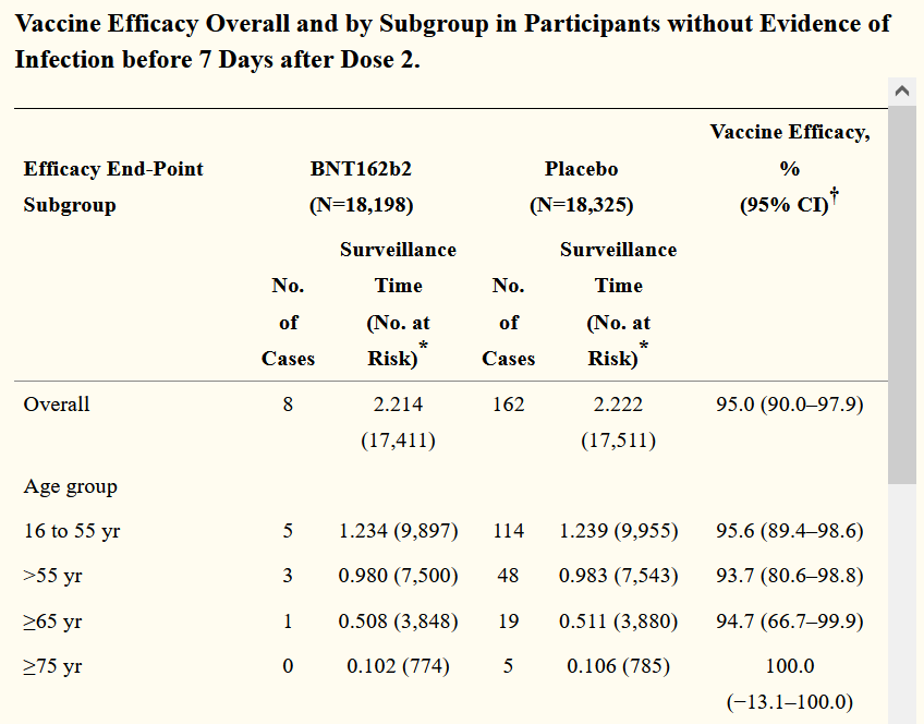 2. Данные, вынутые из процесса вакцинации медработников (82%), так же нерелевантны: и группа, и постановка, и процесс не относится к исследованию, просто какие-то данные на обочине без определения и оценки факторов. У самого Pfizer примерно те же данные (заболевание между дозами) в рамках исследования дают 52%. И это не результативность вакцины, а уровень заболевания между дозами, разные вещи. Этот уровень можно рассматривать как границу сверху, реальная же эффективность будет ниже; Pfizer её не определял и не публиковал.