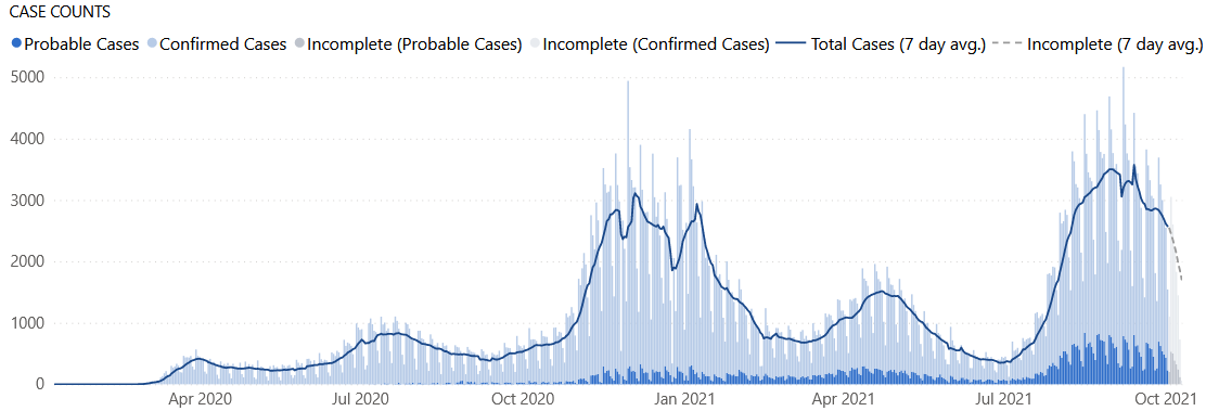 А если без вымысла, что получается? Базовые данные: в штате 7.5 млн., вакцинировались 58%, официально случаев заражения порядка 692 тыс.(~ 10%), оценка бессимптомных и внетестовых случаев, скажем, где-то 20-30% от этого; сколько из всего этого Дельты я не смотрел, но глядя на график (представленный тобой) сказал бы что порядка трети. И эпидемия уже без карантина идёт вниз.
